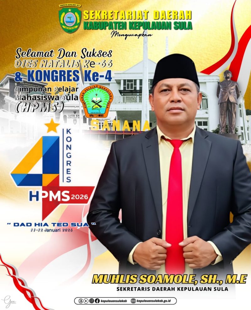 Kontrol Publik,com : Ternate – Keseriusan Sekretaris Daerah (Sekda) Kabupaten Kepulauan Sula (Kepsul) Maluku Utara ( Malut),Muhlis Soamole,dalam kompetisi Pengurus Pusat Himpunan Pelajar Mahasiswa Sula ( PP HPMS) nampak terang. Pasalnya, Siang tadi Master Camp (MC) telah mengambil formulir pendaftaran di sekretariat panitia, Sabtu (10/01/2026).